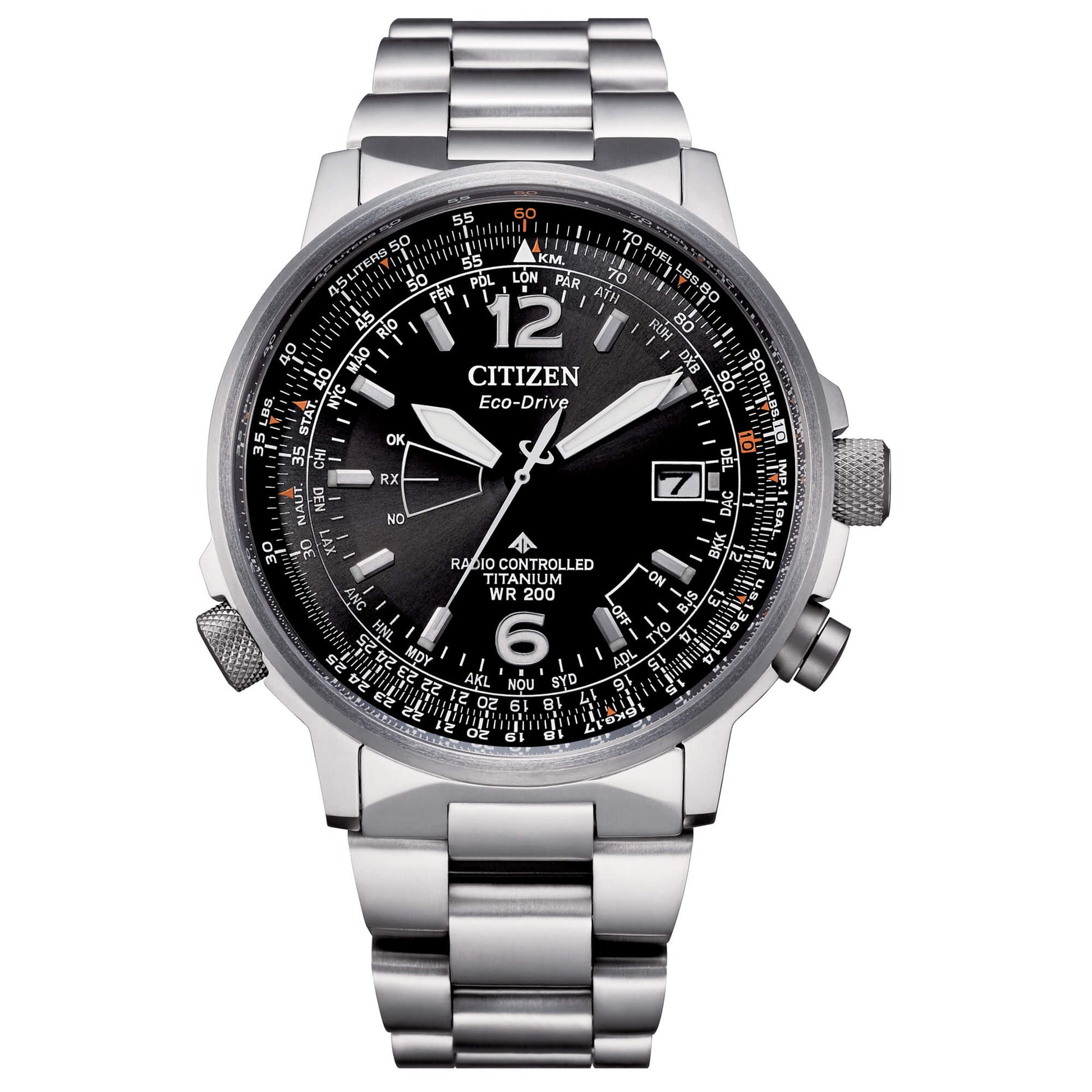 Cassa e bracciale in Super Titanio. Vetro zaffiro. Ghiera girevole bidirezionale (tramite corona a ore 8) con regolo calcolatore aeronautico. WR 20 bar.