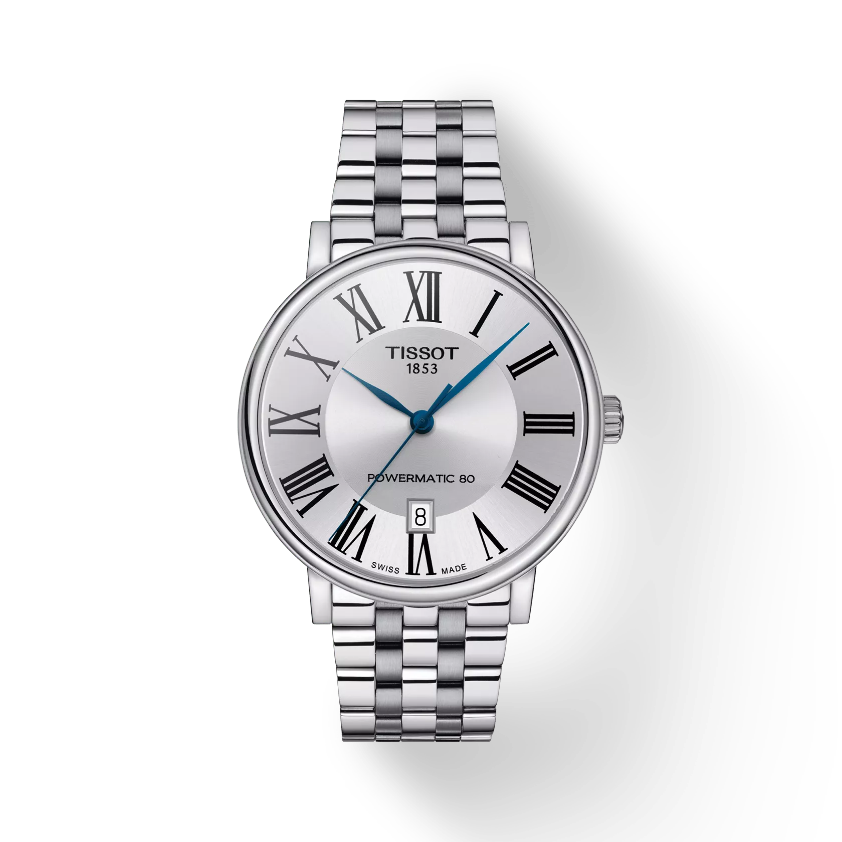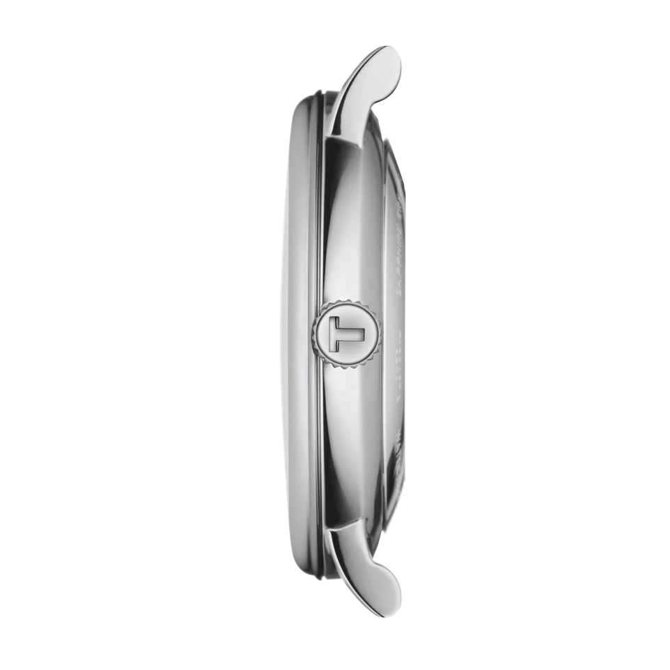Orologio Tissot da polso per uomo collezione T-classic con cassa in acciaio di diametro 40 mm. Quadrante silver con indici neri numeri romani e vetro zaffiro antigraffio. Bracciale in acciaio con chiusura a deployante. Resistente all'acqua (Water Resistant) 5 atmosfere (50 metri). Movimento automatico Swiss made.